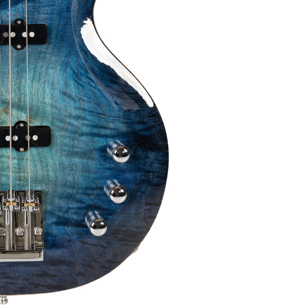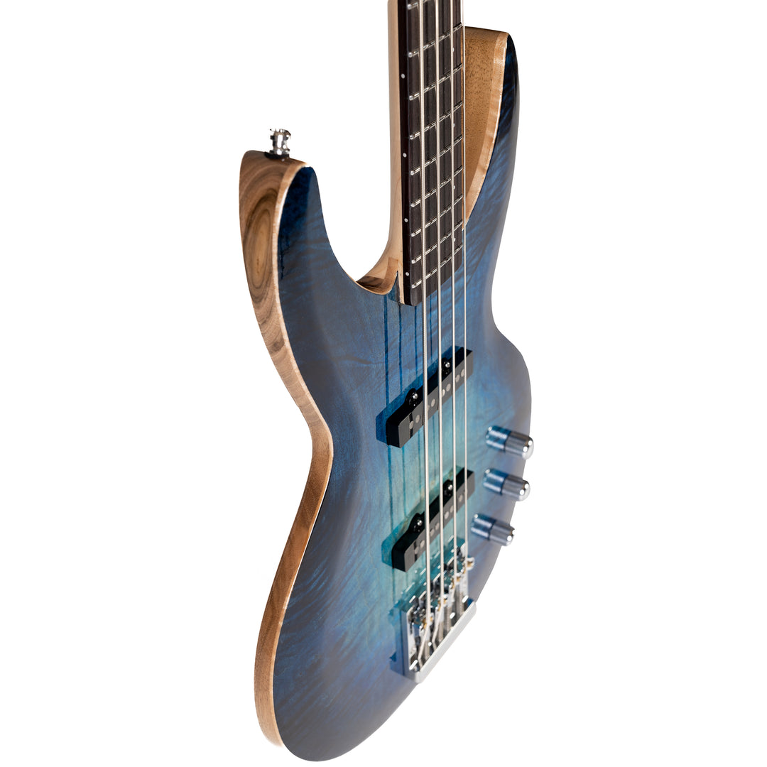 The MV bass features a 100% passive configuration with J-bass pickups developed by Dreamsongs Pickup. The combination of mid- to high-frequency woodwinds and this set of pickups gives the MV an impressive punch. Dynamically generous, it will give you satisfaction in all playing situations.
